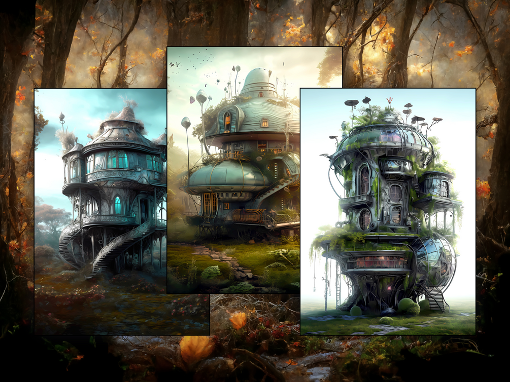 Bring whimsical magic to life with this printable coloring book of 25 little futuristic fairy houses!