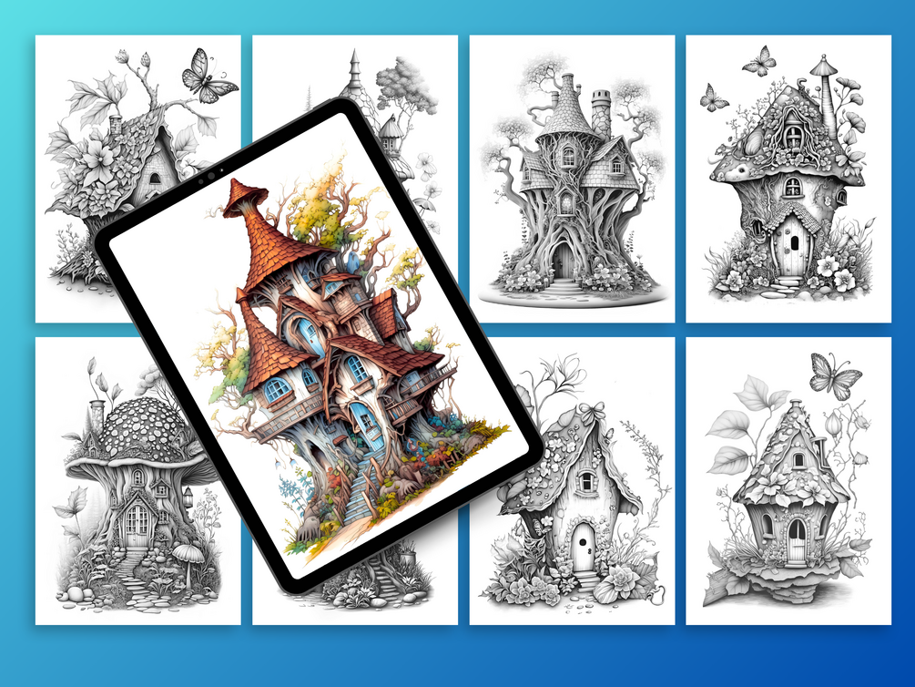 Discover 50 Futuristic Fairy House designs in this printable grayscale coloring book β the perfect way to ignite your imagination and unwind in style. Ideal for both adults and kids, these whimsical homes blend enchanting details with futuristic elements that promise to transport you to another world. π°β¨