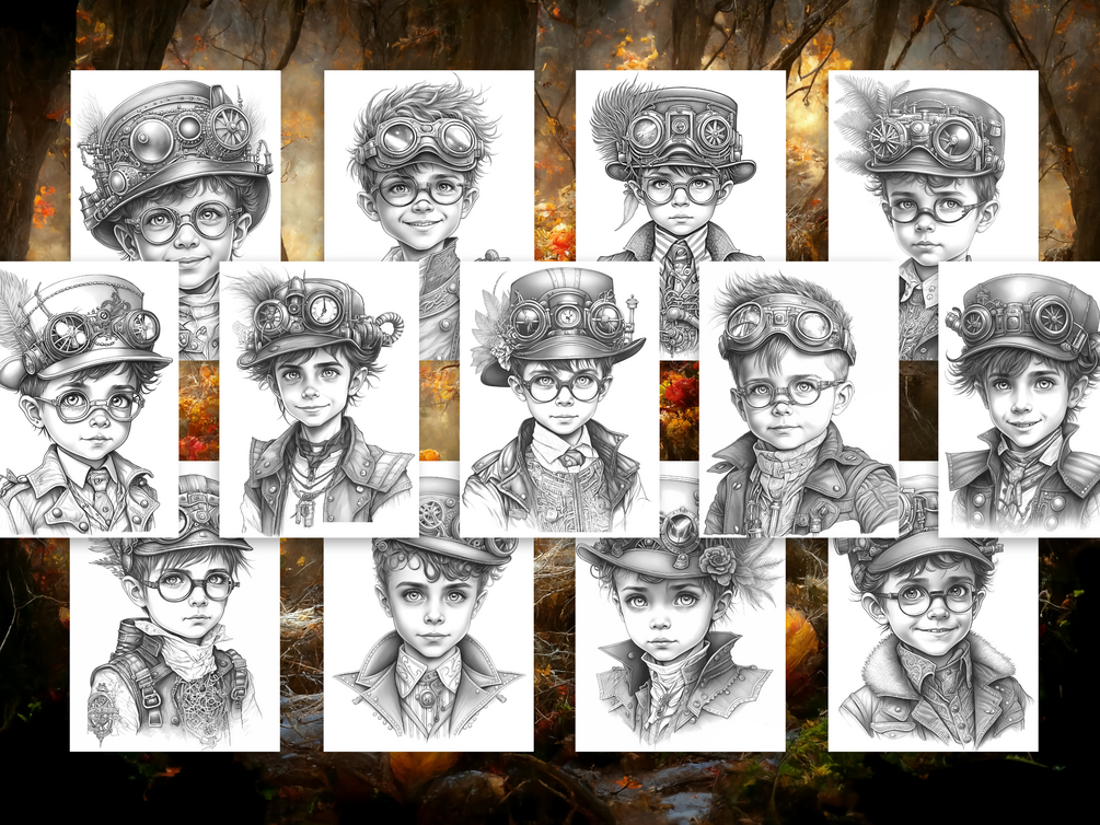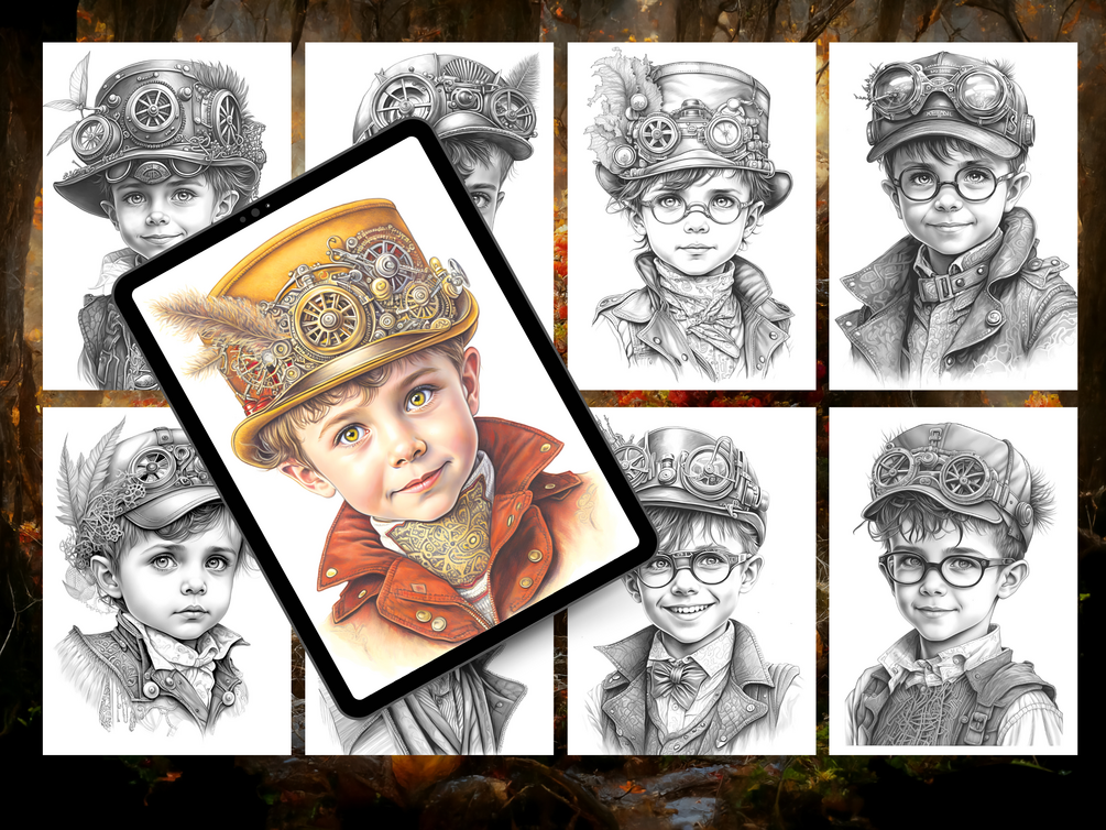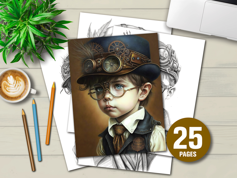 ⚙️ 25 detailed steampunk boys — original, story-rich artwork for endless coloring possibilities